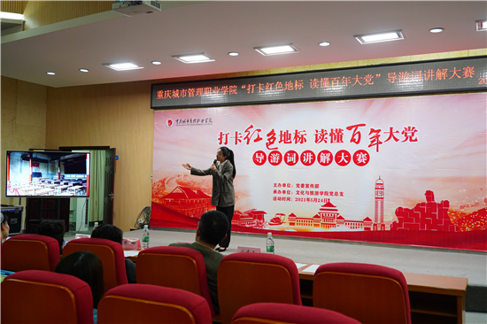 习近平总书记指出:“我们党的一百年,是矢志践行初心使命的一百年,是筚路蓝缕奠基立业的一百年,是创造辉煌开辟未来的一百年。”“三个一百年”高度浓缩了中国共产党领导人民进行革命,建设,改革的漫漫征程,中国共产党在荆棘中开路,历经洗礼,愈加坚韧不摧。为庆祝中国共产党百年华诞,深入学习贯彻习近平总书记对革命文物工作做出的重要指示精神,5月24日,重庆城市管理职业学院在学校一会议室举办“打卡红色地标 读懂百年大党”导游词讲解大赛,200余名师生在参赛讲解员的带领下,跟随习近平总书记的足迹,通过一件件革命文物、一个个“红色地标”、一堂堂生动的“党史课”,深刻地读懂一个百年大党历尽艰辛、缔造东方奇迹的“密码”。