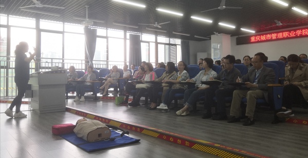 为进一步提升我校教职工应急技能,同时,为我校培训一支具有公共卫生急救技能的教职工志愿者队伍,5月27日,学校工会组织开展了我校教师应急技能培训,培训师来自重庆市急救医疗中心。各二级分工会的工会干部及工会会员代表共计55人参加了培训。我校领导高度重视此次培训活动,党委副书记张新、副院长莫堃亲自参加了培训。