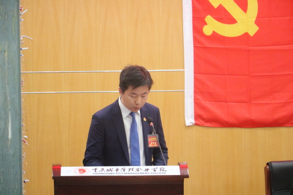 为深入学习贯彻习近平新时代中国特色社会主义思想,全面落实共青团中央、教育部、全国学联、共青团重庆市委员会关于高校学生会改革的文件精神,按照《重庆城市管理职业学院学生会改革推进方案》(重城管院委发〔2020〕37号)文件要求,5月28日,商学院2021年学生代表大会在学校学术报告厅召开。会议由商学院专职组织员、团总支书记汤茹薇主持,商学院党总支书记、院长蒋芹忠、商学院党总支副书记唐鸿铃、校团委办公室主任杨力思、商学院学办主任高瑞娟、学校学生会主席范佳宾、商学院全体辅导员和135名学生代表参加了本次会议。