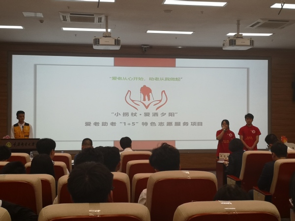 “小拐杖•爱洒夕阳”爱老助老“1+5”特色志愿服务项目是在校团委的支持下,依托智慧康养学院团总支学生会和“星辰”艺术团两大平台,深挖志愿服务与大学生成长成才的内在关系,充分发挥师生的专业技术优势,主要针对社区和养老院的老年人群体开展系列志愿服务活动,实现了助人与育人有机结合,专业理论与社会实践的无缝衔接,构建了以教师为引导、学生为主体、社区机构协同发展的志愿服务体系,形成了“小拐杖·爱洒夕阳”爱老助老“1+5”志愿服务新模式(“1”即党建带团建,组建志愿服务团队,“5”即包括照料指导、康复护理、精神慰藉、文化娱乐、健康宣教等五方面的内容),实现了社区有“关爱”,学生有“成长”,专业有“发展”。