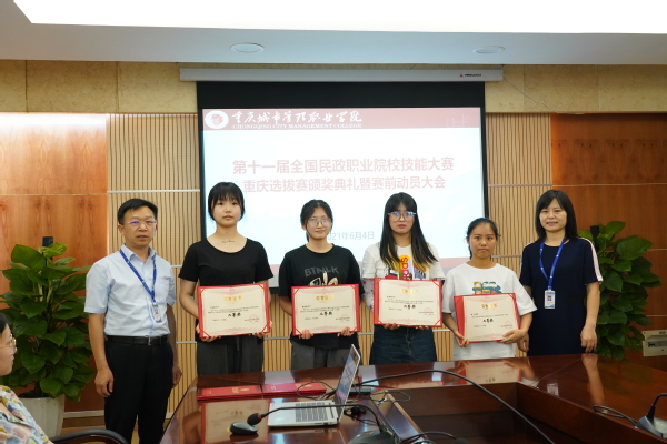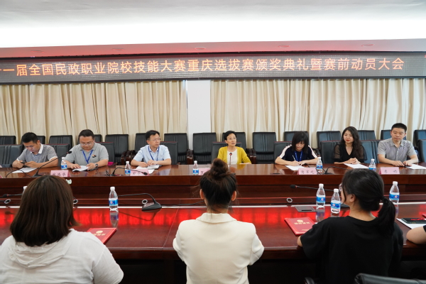 6月4日,民政与社会治理学院在办公楼第二会议室举办第十一届全国民政职业院校技能大赛重庆选拔赛颁奖典礼暨国赛赛前动员大会。学校副校长罗小秋,民政与社会治理学院院长田奇恒、党总支书记陶军屹、副院长郑添华、部分教师代表及初赛获奖学生参加会议,会议由民政与社会治理学院副院长郑添华主持。