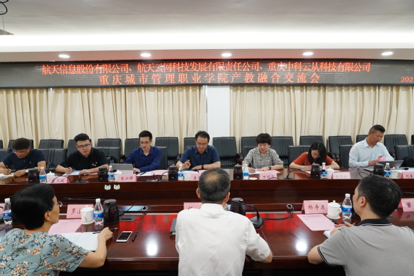 6月7日,航天信息股份有限公司产教技术总监康晋荣、航天云网科技发展有限责任公司市场总监万丽华、重庆中科云从科技有限公司风控事业部总经理朱必樟带领企业代表一行九人来我校进行产教融合交流。我校党委书记任波、副校长罗小秋、纪委书记(监察专员)杨寿康、产教融合中心主任江柯、大数据与信息产业学院党总支书记董勇、智能工程学院院长彭勇、财经学院院长孙鑫、副院长黄菊英及相关教师参加了交流座谈。
