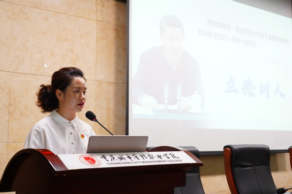 商学院牟艳红副教授以《砥砺初心坚持立德树人牢记使命矢志职业教育》为题,结合自身的学习和工作经历,围绕我们党领导教育工作的百年历程,讲述了砥砺初心立德树人、做学生健康成长的引导者;爱岗敬业勇于进取、做学校专业建设的推动者;勤于实践开拓创新、做新时代双师型教师的践行者三个方面。她总结了学校近些年的快速发展对一线教师学习工作生活给予的指导、帮助和成长,表示将继续坚守立德树人初心,牢记为党育人、为国育才使命,为助力学校建设添砖加瓦,为培养更多优秀的城管院学子而不懈努力。