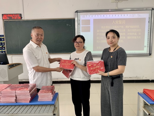活动开始,全体党员在党总支书记蒋芹忠的带领下,面向庄严的党旗,重温入党誓词,重温自己入党时的庄严承诺和坚定决心,接受心灵的净化和洗礼,牢记共产党员的政治责任和历史使命。随后,党总支书记蒋芹忠、副书记唐鸿铃向师生党员代表赠送了“政治生日”珍藏卡和生日礼物书籍《红色的起点》,希望全体党员要时刻牢记党员身份,切实增强党员的荣誉感、责任感、使命感。党员代表高瑞娟、张琴、高俊杰、龙丽、聂洋围绕自己的入党初心和使命感悟发表了感言,表达了对党组织关怀和培养的深深谢意。