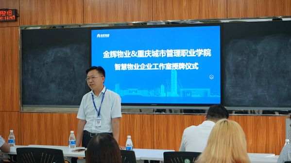 6月21日,民政与社会治理学院在致用楼B301举行了智慧物业企业工作室授牌仪式。北京金辉锦江物业服务有限公司西南公司总经理张金银、人力行政总监李永健,我校产教融合中心主任江柯、民政与社会治理学院院长田奇恒、现代物业管理专业带头人屈昌辉出席了授牌仪式。