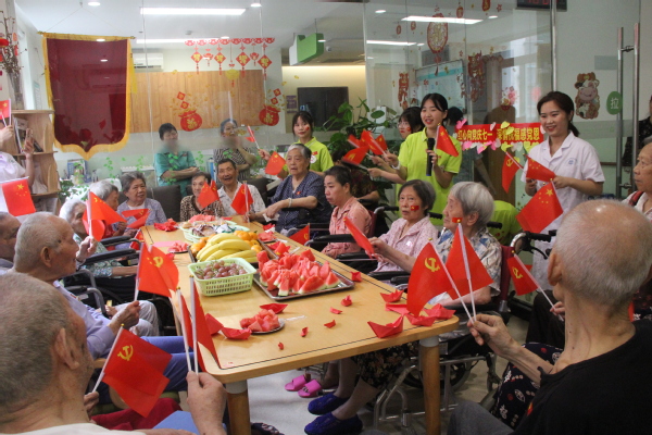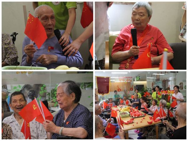 在深情祝福感党恩环节中,老人们怀着激动的心情,围绕“感恩党的关怀,深情祝福祖国”主题争先发言,大家在畅谈中集中体现了感恩,感恩党的英明领导,不仅推翻了封建统治阶级的压迫,让广大农民翻身做了主人,而且带领中国人民从帝国主义的铁蹄下站了起来,自力更生,艰苦奋斗,把中国建成民族独立、人民解放的新中国,不断走向国家富强、民族振兴、人民幸福的康庄大道;感恩党的政策好,从小时候吃不饱饭、衣不暖身、住破瓦房到现在人人不愁吃、不愁穿、不愁住,孩子们也都有学上,这得益于党的政策好。拥有70年党龄的老党员刘婆婆讲到,苦难的童年让自己每天都在饥饿与恐惧中度过,中年时得益于党的关怀,可以边工作边上夜校,读书认字,老年时得益于党的恩惠,可以住在养老院安享晚年,实现老有所依,老有所依,老有所乐。在发言完毕后,大家纷纷拿起笔,在心愿卡上一字一句写下对党的祝福,并贴在心愿墙上,表达对党、对祖国的热爱之情。