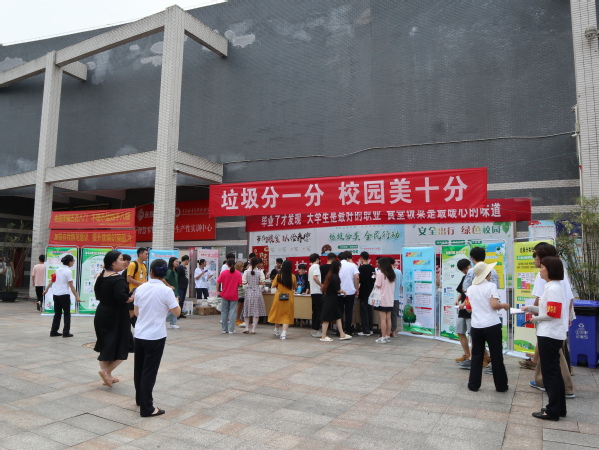 6月22日,我校在一食堂广场开展“校园生活垃圾分类”宣传活动。活动以“垃圾分一分 校园美十分”为主题,旨在全面贯彻落实中央、市委、学校关于垃圾分类工作的各项部署要求,对我校下一阶段垃圾分类工作进行再动员、再推进。基建后勤处工作人员、党委组织部及院团委志愿者、大正物业相关服务人员参加了此次活动。
