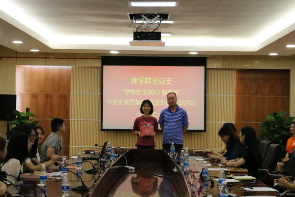 活动最后,蒋芹忠书记带领全体党员重温了入党誓词,各党支部书记向毕业生党员赠送政治生日珍藏卡和“生日礼物”——书籍《红色的起点》,为全体毕业生党员过了一个非常有意义的集体“政治生日”,以此激励全体毕业生党员要学党史、明初心、践使命,用一生的行动和付出履行入党誓言。