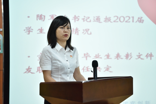 党总支书记陶军屹宣读了2021年优秀毕业生名单和校友联络员名单,并祝愿获奖同学再接再厉,捷报频传,同时希望校友联络员积极工作,迅速适应由学生到校友这一身份的转变,继续把同学们凝聚在一起,关心学校和专业,积极为学校发展建言献策。与会领导一起为优秀毕业生颁发了荣誉证书,为校友联络员颁发聘书,田奇恒院长为毕业生代表颁发了毕业证。