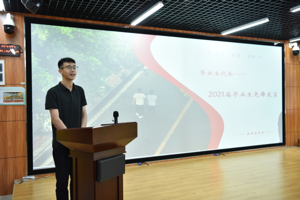 刁艳波博士作为学院教师代表发言,对2021届毕业学子提出了三点希望,一是保持继续学习,期望同学们要保持终生学习的习惯,让学习充盈人生每一个阶段,终身受益;二是怀有感恩之心,用真实情感去体验身边的人、事、物,践行知恩图报,满怀感恩之心,在人生路上行走得愈稳愈远;三是坚持诚实守信,步入社会的学子,或多或少将面临形形色色的诱惑,要坚定内心信念,把坚持诚实守信当做为人处事的基本底线原则。