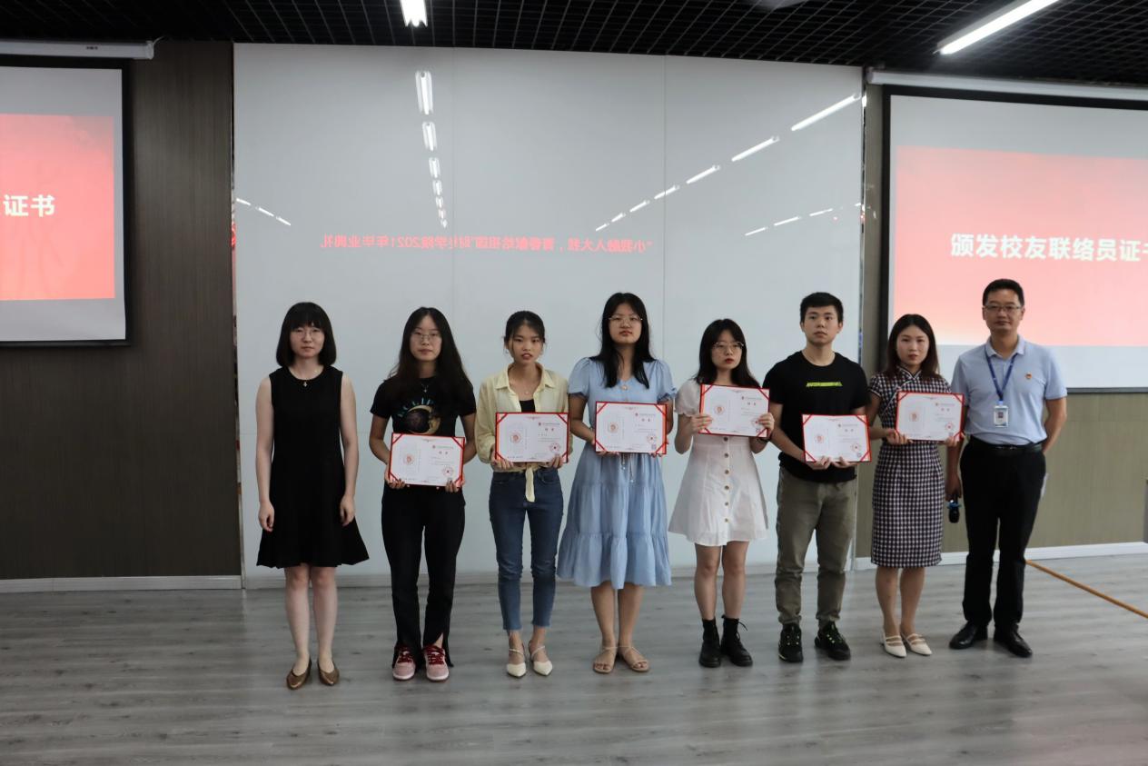 孙鑫院长宣读了学校关于表彰优秀毕业生和聘任2021届校友联络员的文件,并为获奖学生代表颁奖和为获聘学生代表颁发聘书。她对获奖同学表示祝贺,希望毕业生们再创佳绩,为社会主义现代化建设作出青年一代应有的贡献,希望校友联络员牢记母校和老师们的嘱托,迅速适应和转变身份,把同学们紧密凝聚在一起,为母校校友工作作出积极的贡献。