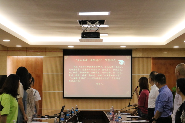 最后,全体与会毕业生举行了“步入社会· 与廉同行”宣誓仪式。伴随着《纪念》悠扬的旋律响起,商学院2021届毕业生欢送会圆满结束!