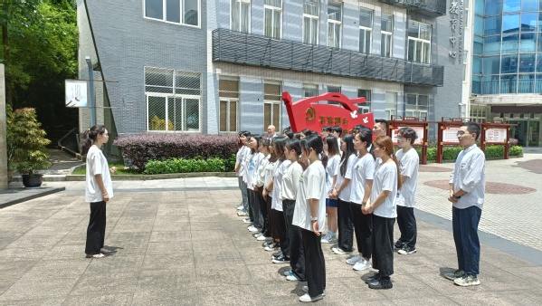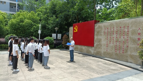 在蒋芹忠同志的带领下,新发展的预备党员佩戴党徽,面向党旗,举起右手,庄严向党旗宣誓,立誓遵守党的章程,为党和国家奋斗终身。蒋芹忠同志还带领新发展的党员共同学习了习近平总书记在“七一勋章”颁授仪式上的讲话精神。“新时代是需要英雄并一定能够产生英雄的时代。”“只要坚定理想信念、坚定奋斗意志、坚定恒心韧劲,平常时候看得出来、关键时刻站得出来、危难关头豁得出来,每名党员都能够在民族复兴的伟业中为党和人民建功立业!”习近平总书记的重要讲话,振奋人心。新党员代表张添捷同志表示要以先进为榜样,学习他们身上优秀品格,在各行各业散发出属于自己的光和热,做新时代的奋斗者和追梦人!新党员代表王念慈同志表示要不断的提高自身的思想政治素质,加强科学文化学习,以过硬的本领在工作生活中发挥先锋模范作用。