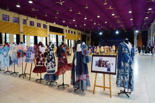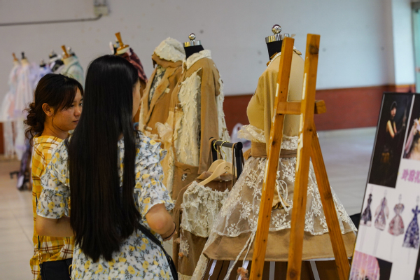 为更好地宣传学校专业课程思政教育教学成果,彰显办学特色,展现文化与旅游学院的专业素养及当代大学生的创意思维,7月6日,文化与旅游学院2019级服装设计与工艺专业毕业设计静态展在学校小礼堂举办,学校领导和师生纷纷到场观展。