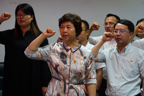 交流发言后,党支部组织全体党员集体观看了“七一勋章”获得者张桂梅先进事迹视频,并在张新副书记的带领下面对鲜艳的党旗重温了入党誓词,再次表达了对党的忠诚,明确了自身使命与责任。同时,张新副书记向支部党员同志赠送了政治生日珍藏卡和《中国共产党简史》一书。支部党员纷纷表态,一定时刻牢记使命,发扬党的优良传统,坚定信仰、求真务实、开拓进取,在不忘初心中行稳致远,在牢记使命中开辟未来。