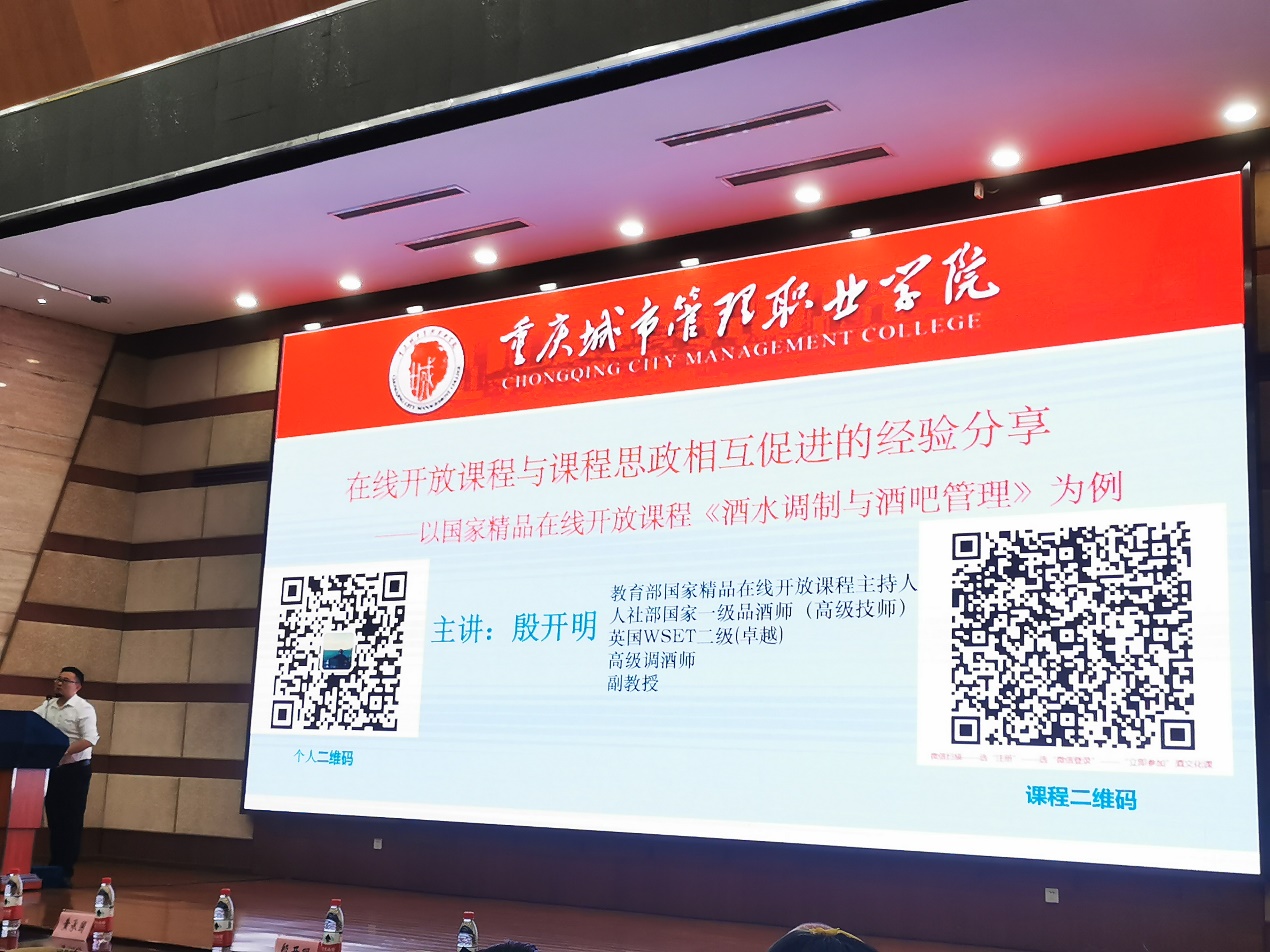 殷开明副教授在会上作了《精品开放课程与课程思政相互促进的经验分享——以国家精品在线开放课程《酒水调制与酒吧管理》为例》的专题讲座。讲座分为精品在线开放课程解读、课程思政解读、精品在线开放课程与课程思政的关系、如何建设精品在线开放课四个部分,针对如何建设职业教育国家精品课程进行了详细解析。