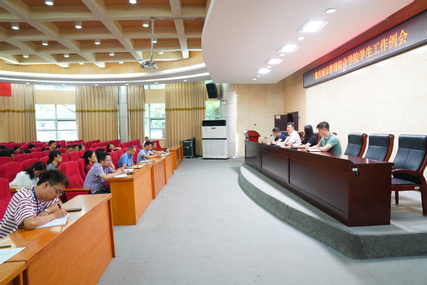 会上,学生处、安全管理处、团委主要负责人分别就本期学生管理工作、学生安全工作、共青团工作进行了简要总结,并对近期重点工作进行了再部署。学生处处长徐颖就本年度学生工作“八项行动计划”实施以来,学生日常教育管理、辅导员队伍建设、学生安全教育、心理健康工作、资助育人、劳动教育和就业指导等工作中取得的成绩、亮点进行了小结,同时,对近期就业数据核查、毕业生就业状况跟踪调查、暑期家访工作进行了安排,对辅导员、班主任年度工作考核办法修订情况进行了说明。安全管理处副处长刘骏简要通报了近期学生中发生的典型安全事件,并对暑期学生安全教育进行了再提醒、再强调。团委书记张毓威对本学期共青团工作进行了简要回顾,再次对近期重点工作作了强调。