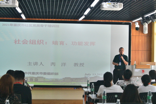 7月13日,由中共重庆市委组织部党员教育中心组织,璧山区委组织部承办的全市城市社区党员骨干培训示范班现场教学在我校顺利举办,来自全市各区县的社区党员骨干共123人参加学习。民政与社会治理学院院长田奇恒、实训室主任王玉龙、社会工作专业教师芮洋教授及相关教职工参加了现场教学活动。