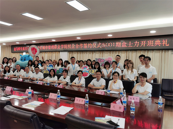 7月13日,重庆城市管理职业学院校企合作签约仪式&盒马鲜生重庆分公司&001期现代学徒制(盒士力班)开班仪式在学校二会议室举行。重庆城市管理职业学院党委委员、副校长袁国,商学院副院长邱云,盒马鲜生重庆分公司区总谭峥嵘,盒马鲜生重庆分公司HRG刘璐,盒马鲜生总部营运及培训负责人、重庆区域培养店HR导师,现代物流管理、连锁经营与管理、市场营销专业带头人、教研室主任、部分骨干教师和001期现代学徒制(盒士力班)全体同学参加了活动。