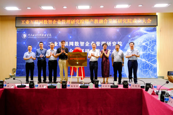 会上,科技部高技术研究发展中心、重庆城市管理职业学院等领导共同为“工业互联网数智企业管理研究院”“西部产教融合发展研究院”揭牌。