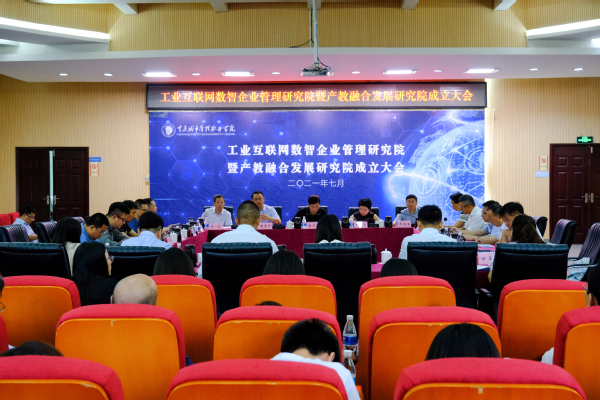 为促进工业互联网人才培养,深化产教融合推进人才供给侧结构性改革,7月17日,我校召开工业互联网数字企业管理研究院暨产教融合发展研究院成立大会。科技部高技术研究发展中心研究员稽智源,航天信息股份有限公司1+X产教技术总监康晋荣、航天云网科技发展有限责任公司市场总监万丽华、重庆中科云从科技有限公司风控事业部总经理朱必樟、重庆航天信息有限公司副总经理杨斌,航天信息化专家孙义,我校党委书记任波,党委副书记、校长邓明国,副校长罗小秋,纪委书记、监察专员杨寿康,副校长莫堃及企业界的朋友、相关职能部门、二级学院领导和教师共150余人参加了成立大会。会议由副校长罗小秋主持。