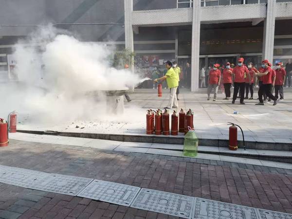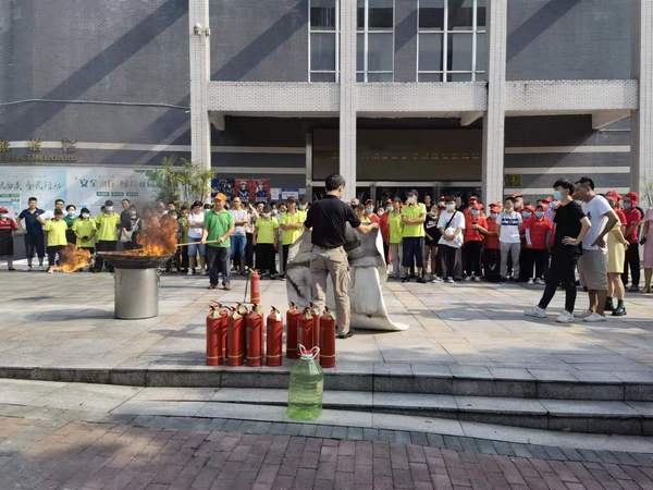 当天下午,重庆安宣防火中心赵新老师还对食品从业人员开展了消防安全知识培训。赵新老师结合食堂、门面等商业服务场所消防安全工作实际,通过播放相关视频,分析典型案例、针对食堂和商业街门面的工作岗位的性质,就火灾发生的主要原因、种类、预防措施、处理办法及灭火器、灭火毯的使用方法等内容进行了详细的讲解与指导,培训结束后,在食堂门口进行了消防技能现场实操演练。