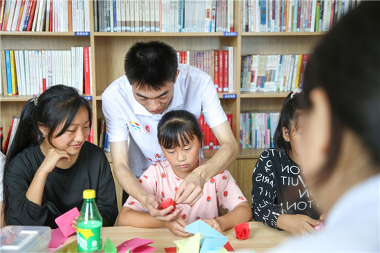 7月19日,为丰富乡村青少年儿童暑期生活,促进当地乡风文明建设,激发学生自理自控自学等内生动力能力,从而强化人才培养,培育文明新风,重庆城市管理职业学院民政与社会治理学院乡村振兴实践团携手夜力坪村村委、驻村工作队在重庆市丰都县三建乡夜力坪村便民服务中心阅览室开展“拒绝手机,拥抱生活,走向社区”关爱青少年儿童小组活动。
