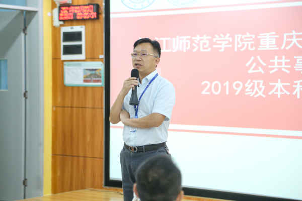 9月9日,民政与社会治理学院在致用楼B205室举行公共事业管理专业2019级本科新生入学教育大会,重庆工商大学公共管理学院纪杰教授,民政与社会治理学院院长田奇恒、党总支书记陶军屹、教办主任李娇、代理学办主任王颖辰及专业负责人、专业教师代表、公共事业管理专业全体2019级本科新生参加会议。会议由陶军屹书记主持。