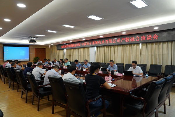 9月10日,中国电子系统技术有限公司副总裁郭炜一行11人,到我校举行产教融合洽谈会。学校党委书记任波,党委副书记、校长邓明国,副校长罗小秋,智能工程学院、大数据与产业学院、民政与社会治理学院、产教融合中心、图情信息中心等相关负责人参加会议。会议由罗小秋副校长主持。