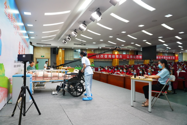 本次比赛设置半决赛和总决赛两个课目,半决赛由理论知识、实操技能单项赛两部分组成,总决赛由综合技能实操竞赛、设计持续照护计划两部分组成。理论知识主要考核养老护理员对《养老护理员国家职业技能标准(2019年版)》知识要求的理解掌握,占总分的30%。结合社区照护、养老机构照护场景,操作技能主要考核养老护理员针对老年人身体、精神状况提供生活照护、基础照护、康复服务、心理支持等服务的实操能力,占总分的70%。