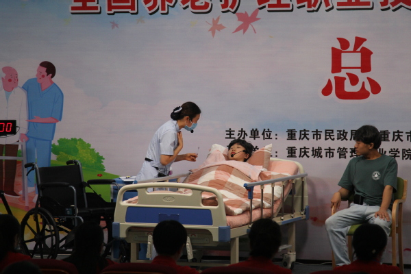 9月15-18日,由重庆市民政局、重庆市人力资源和社会保障局、重庆市卫生健康委员会联合举办的全国养老护理职业技能大赛重庆市赛区选拔赛在我校举行。来自重庆各区县、市直属福利院的42支参赛队168名选手参加比赛。