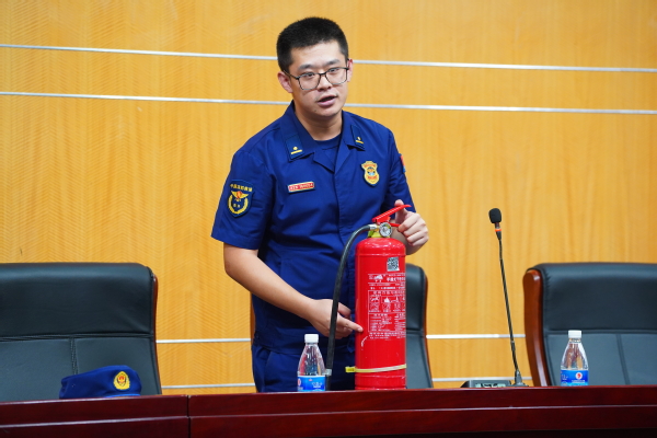 在知识讲解阶段,重庆市沙坪坝区消防救援支队综合保税区中队的韩维珂副站长及多位消防员到校为军训新生带来消防知识讲座。韩站长对火灾的定义和种类进行了介绍;他结合高校学生在公寓居住、生活的特点介绍了防火相关知识,联系鲜活的案例,叮嘱大家要成良好的生活习惯,严控火源和可燃物,紧急情况发生时要知道阻止火势蔓延的方法。