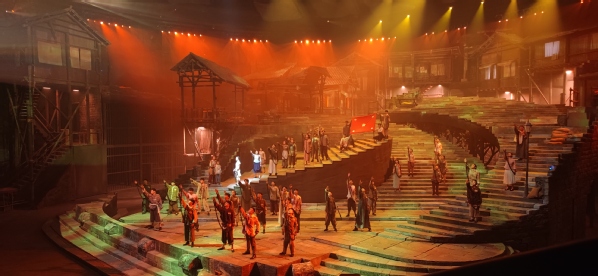 《重庆·1949》以重庆解放前夕为背景,采用“大写意+工笔画”的形式,多条主线并行演绎红岩烈士不朽的家国情怀,整个剧目情节跌宕起伏,场面浩然壮阔,展现了先烈们坚守信仰、宁死不屈,为解放事业做出努力和牺牲的英雄形象,生动诠释了“红岩精神”的丰富内涵,构筑了一幅恢弘的历史画卷。