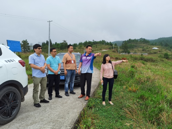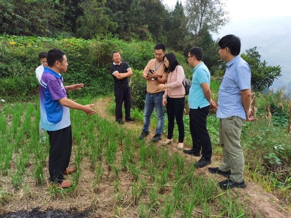 在农行丰都县龙河支行行长、驻乡工作队队员孙维波以及栗子乡干部的带领下,我校一行人实地考察了联合村洋河湾、建龙村寮叶坝等地方,闫明旭、陈丽花两位老师详细了解了当地的气候、土壤、作物种植等情况。