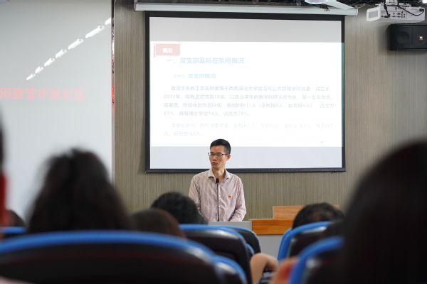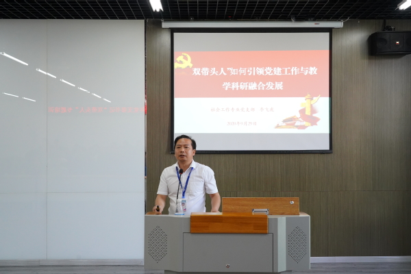 培训中,西南政法大学政治学系教工党支部书记、政治学研究所所长吴宇、我校民政与社会治理学院党总支社会工作专业党支部书记李飞虎结合所在学校和自身工作经历,分别从党支部及所在院系概况、党建与业务融合的基本做法、党建与业务融合的主要成效、经验启示和党支部书记“双带头人”应如何做、教学层面和科研层面的做法成效、“三个引领”等方面作了专题讲解。