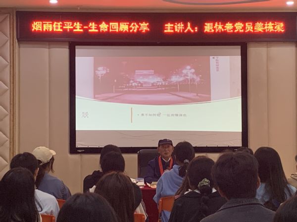 “哪里艰苦哪里去,哪里艰苦哪里安家”。退休教师姜栋梁以“入党、保边疆、工作”为时间线,向大学生志愿者们分享了自己如何用实际行动践行跟党走、听党话、感党恩。姜老师自豪地说道:自己是学校建设、发展的亲历者参与者见证者,见证了祖国从站起来到富起来到强起来的历程。最后他告诉青年志愿者,要珍惜今天的生活,练就硬本领,树立远大理想,做合格的社会主义建设者和接班人。