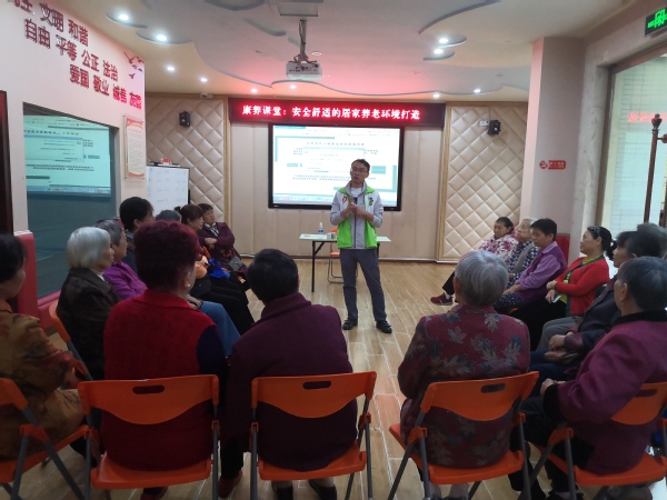 智慧康养学院党总支党员教师雷雨副教授为老人带来一场专业的康养课堂——打造安全舒适的居家养老环境。首先,雷老师给老人们普及了居家养老的安全专业知识,随后通过形象的生活案例深入浅出分析到居家养老环境与安全息息相关,讲解了在家中如何避免安全隐患,结合自身实际情况进行居家适老化改造,安装安全舒适的养老配置,如床边护栏、防走失定位装置、防滑垫等老年用品。