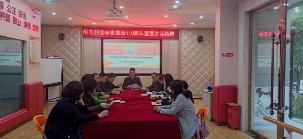 今年是辛亥革命110周年,为缅怀革命先驱的历史功勋,学习和弘扬辛亥革命精神,10月19日,我校民革支部在学校四叶草活动中心举行了“纪念辛亥革命110周年”专题学习会。党委统战部部长张睿,民革巴南区委会副主委、巴南区政协委员张仲兵,以及我校民革支部全体党员参加会议。