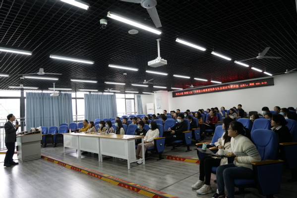 周矩副教授长期从事心理健康服务研究和实践,积累了丰富的心理健康课程教学和咨询实践经验。在近三个小时讲座中,他以“阳光心态 积极人生”为题,围绕“目标感、价值感与幸福感”“情商培养与社会适应”“自我认识与情绪管理”等方面,对“情商”“心理压力”“沟通”“幸福感”等概念进行了深入浅出的阐释,为做好大学生心理健康工作提供了许多切实可行的对策和建议。
