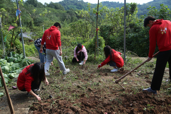 活动中,在当地村民的带领下,青马学员来到种植地了解了常见农具使用方法和作物的种植管理及农作物生长的各个环节。之后大家纷纷接过锄头或镰刀,热火朝天的开始耕作。同学们互助合作,锄地的动作从最初的生涩到逐渐的娴熟,起垄、开沟、撒种、粑地,忙的热火朝天,直到活动结束大家都还在探讨农事劳作的体悟。