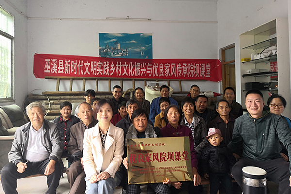 据了解,“优良家风院坝课堂”是重庆城市管理职业学院联合巫溪县委宣传部、县乡村振兴局、县团委和县妇联等单位,在巫溪县下堡镇开展的新时代文化实践活动的主要内容。该项活动被重庆市教育科学研究院立项为2021年老年教育专项课题之一,旨在通过“院坝课堂”的形式开展送教下乡活动,讲授《民法典婚姻家庭篇》《新时代家庭的和谐相处指导》等知识内容,通过讲述家庭故事、建立优良家风陈列室等方式呈现学员和村民的家风建设成果,从而彰显为幸福而努力奋斗的精神内涵以及和谐家庭、和睦邻里的文明风尚。