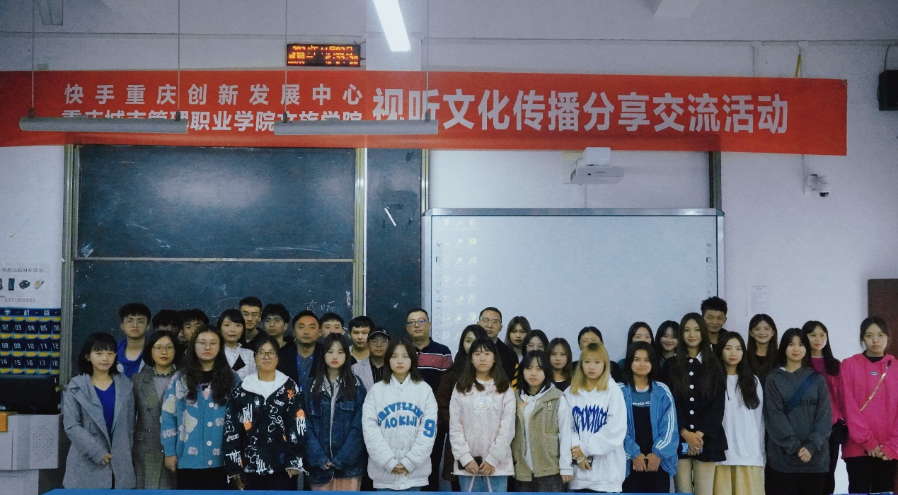 为进一步顺应数字技术与实体经济深度融合的时代发展需求,加大校企合作产教融合力度,激发学生专业学习热情,11月2日,文化与旅游学院邀请校企合作单位快手重庆创新发展中心,在敏学楼E202教室举办了视听文化传播分享交流活动。快手重庆创新发展中心副总经理罗伟林等一行7人,文化与旅游学院院长柏文涌,文化产业经营与管理专业和空中乘务专业180余名师生参加活动。