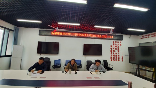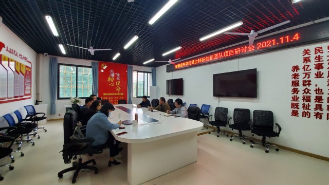 会上,各位博士围绕科研创新团队项目建设,从行业调研,大数据生物信息技术、失能失智老年人生理心理干预、适老化智慧产品开发等内容进行了讨论,并汇报了目前存在的问题及下一步的打算。