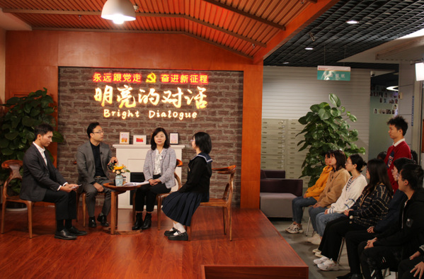 直播课伊始,马克思主义学院教师刘红禄、商学院学生谭智慧以“老吾老以及人之老”的传统爱老美德开篇,与现场师生和嘉宾重温了在刚刚过去的重阳节里,全国各地许多社区都举办了丰富温暖的爱老敬老孝老活动,让观看直播课的观众们再次深深感受到我国敬老美德和爱老文化的深厚。接着,“崇敬以待,最美夕阳”《明亮的对话》主要紧紧围绕“我国人口老龄化现况”、“我国养老事业及养老专业发展”、“高职院校学生职业操守与职业道德培养”、“敬老爱老孝老文化涵育”等四个方面展开。郭彬董事长首先从自身经历谈起,分享了企业创办、发展的艰辛历程,见证了我国养老行业从方兴未艾到蓬勃发展的历史飞跃。他谈到,养老行业发展离不开人才的培养;我校养老专业顺势而为,坚持改革创新,以市场需求为导向,加强高素质专业养老护理型人才培养,为养老护老行业输送了大批精兵强将。张俊教授用丰富的数据剖析了当前我国人口老龄化的现状及发展趋势,发展高质量的养老事业是实现“老有所养,老有所依,老有所为,老有所乐”的必然要求;介绍了我校在如何“把理论与实践紧密结合,练就学生过硬的专业技能,把学生培育成企业技能人才和管理人才”所采取的有效育人举措。