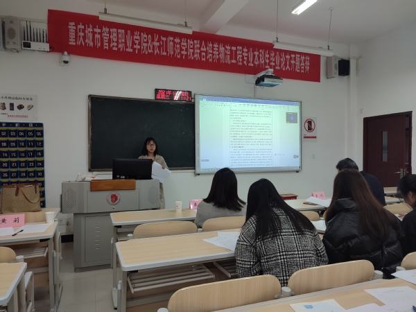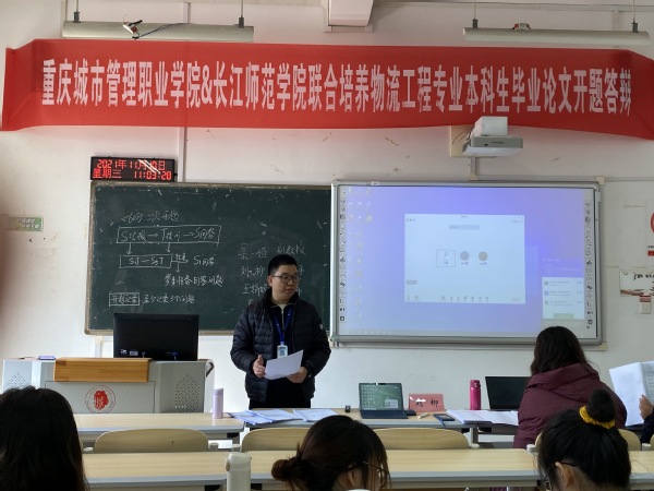 11月10日,重庆城市管理职业学院与长江师范学院联合培养物流工程专业本科学生顺利完成了毕业论文开题答辩。长江师范学院管理学院副院长罗文宝、指导教师夏薇,李芳芳,我校商学院党总支书记蒋芹忠,副院长邱云参加了本次开题答辩,物流管理专业本科专业带头人岳一姬、授课教师曹刚、黄莉、秦情、刘柳等担任答辩评委。