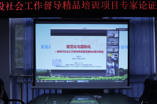 11月21日,新时代中国社会工作督导人才建设研讨会暨重庆城市管理职业学院“双高”建设社会工作督导精品培训项目专家线上论证会在我校举行。会议由我校和中国社会工作教育协会社会工作督导专业委员会共同举办。学校党委副书记张新、重庆市民政局慈善事业促进和社会工作处处长周思颖、中国社会工作教育协会副会长兼秘书长马凤芝、中国社会工作学会秘书长邹学银、社会工作督导专业委员会相关专家及学校继续教育学院、双高办负责人等出席了会议。