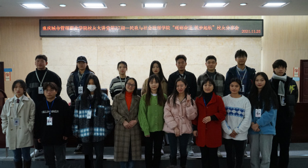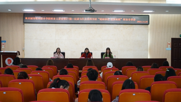 11月25日,民政与社会治理学院第27期校友大讲堂—“砥砺奋进 筑梦起航”校友分享会在办公楼第一会议室举行。分享会特邀2012级校友龙凤(重庆公共运输职业学院专职教师)及2016级校友钟泽红(目前服务于九龙坡区委宣传部)回校作经验分享。大会由民政与社会治理学院党总支书记、校友分会会长陶军屹主持。