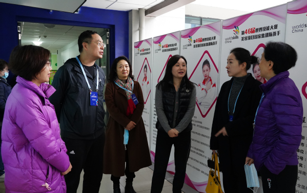 11月26日-28日,第46届世界技能大赛美容项目第一阶段选拔赛在致用楼世界技能大赛中国集训基地美容项目基地顺利进行。选拔赛包含高级面部护理、简单面部护理、身体护理、手足护理、睫毛种植、美甲、化妆、脱毛八个项目五个模块,旨在选出5名种子选手,进入第二阶段的集训及选拔,最终5进1 选出1名选手,代表中国队征战2022年10月在我国上海举行的第46届世界技能大赛美容项目决赛。重庆市人力资源和社会保障部职建处彭璐副处长、重庆市职业技能鉴定中心蹇晓林主任、王华源副主任、学校罗小秋副院长、周毅副院长巡视了考核现场。