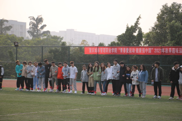 为进一步落实全民健身国家战略助力健康中国建设,12月5日,我校在运动场举行了2021年“青春爱运动 健康强中国”学生趣味运动会。运动会由商学院承办,来自校团委、民政与社会治理学院、大数据与信息产业学院、智能工程学院、数智财经学院、文化与旅游学院、智慧康养学院等部门的180余名学生参加。