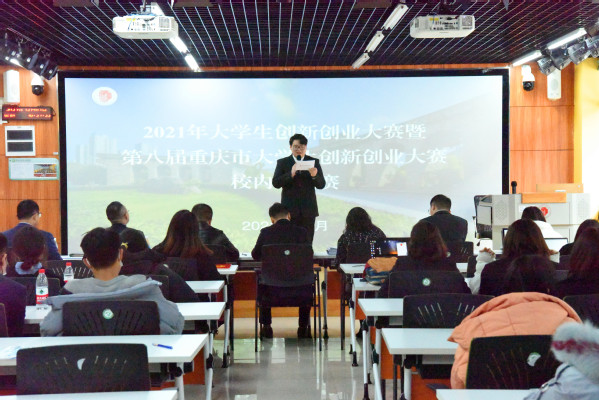 12月7日,2021年大学生创新创业大赛暨第八届重庆市大学生创新创业大赛校内选拔赛在我校致用楼举行。学校副校长周毅出席比赛,团市委创新创业服务中心副主任郭伟等7名创新创业领域的专家和业界翘楚担任比赛评委。